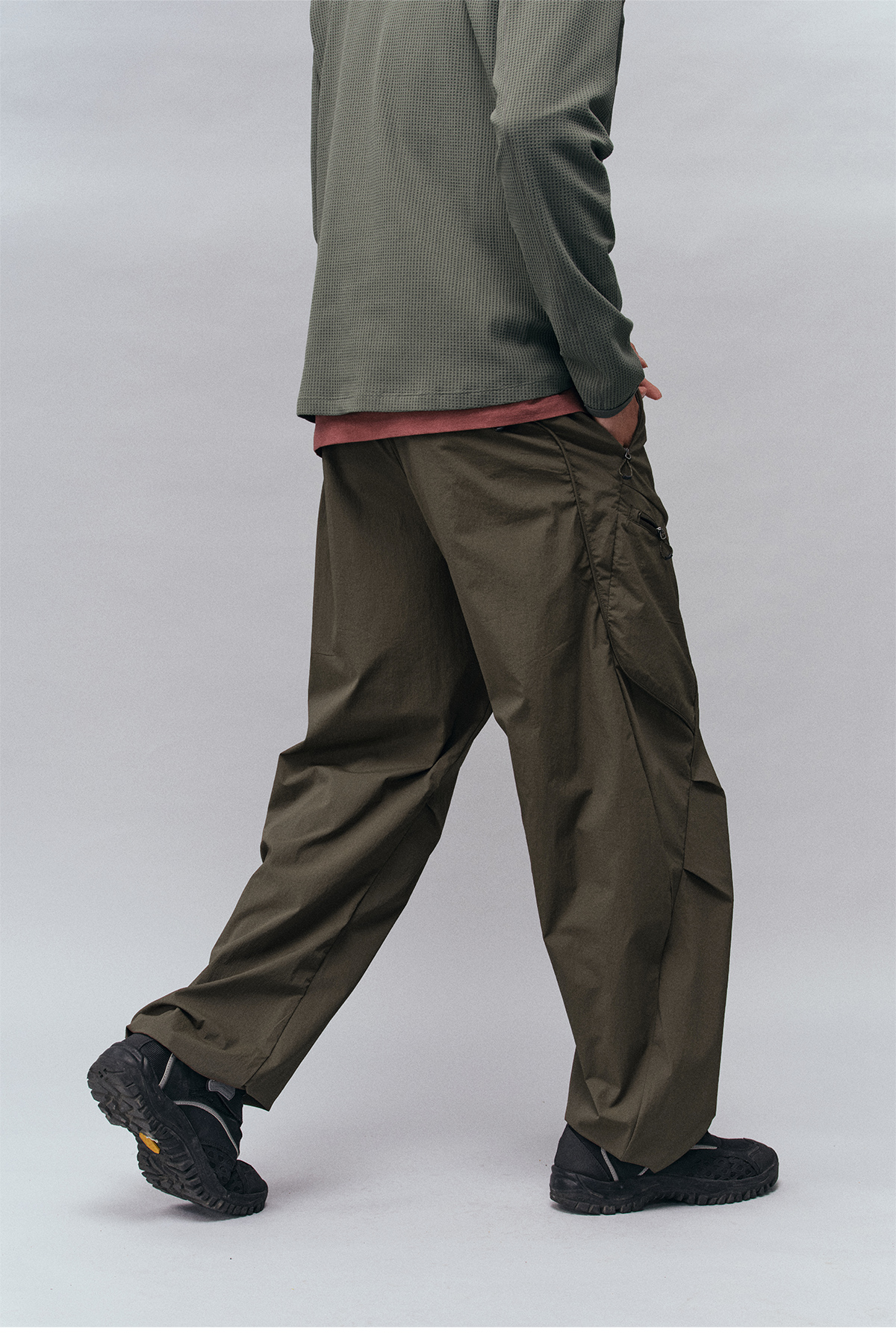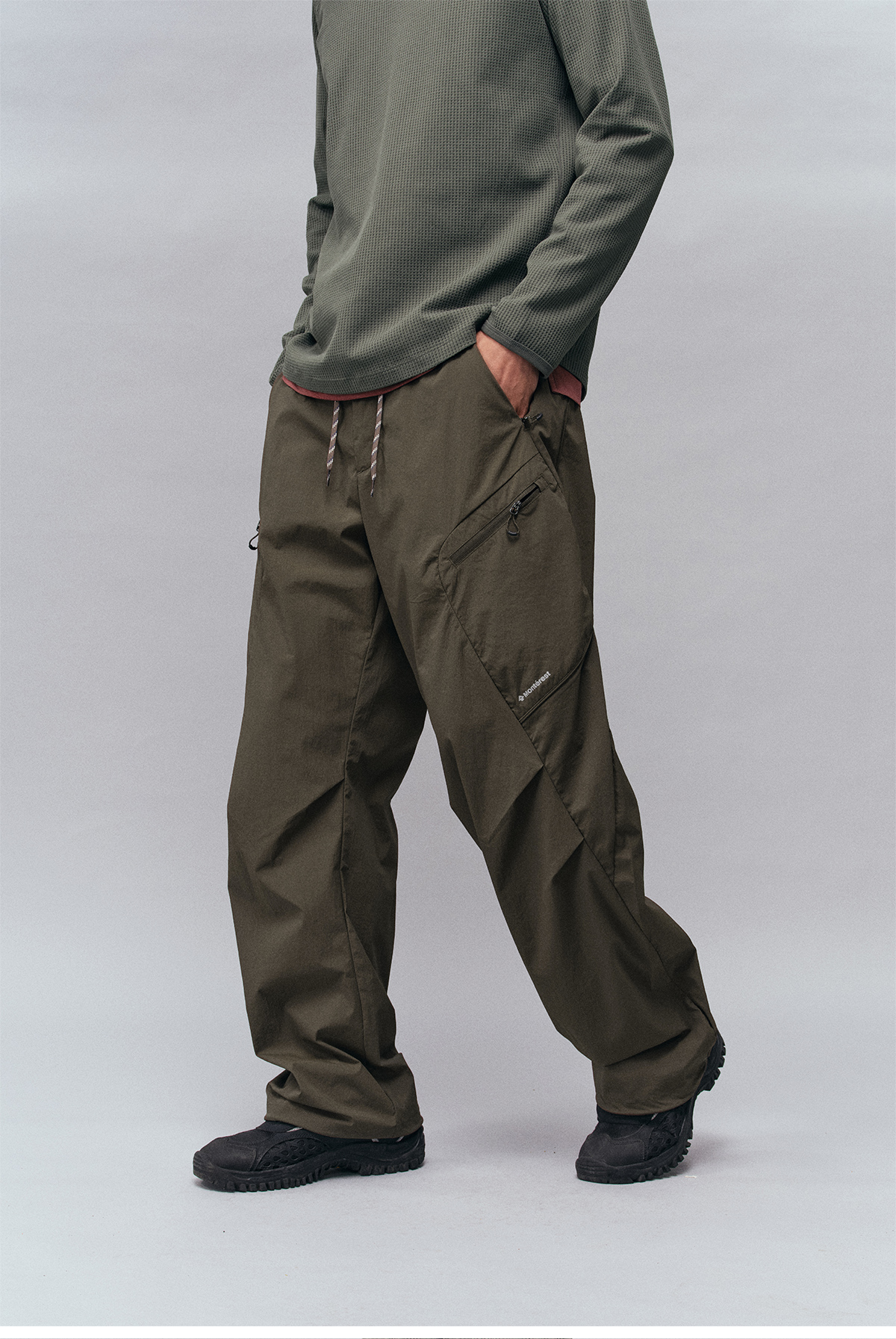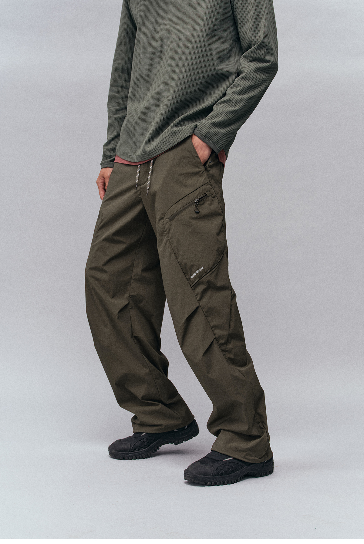 Эти брюки с уникальным изогнутым кроем созданы на основе трёхмерной конструкции, которая полностью переосмысливает классический рабочий стиль.