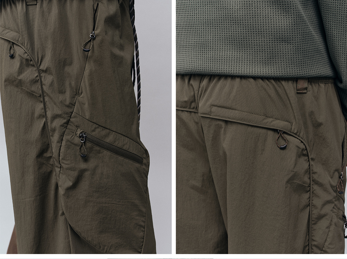 Эластичная система регулировки на голени со скрытой стяжкой позволяет одним движением менять форму брюк —