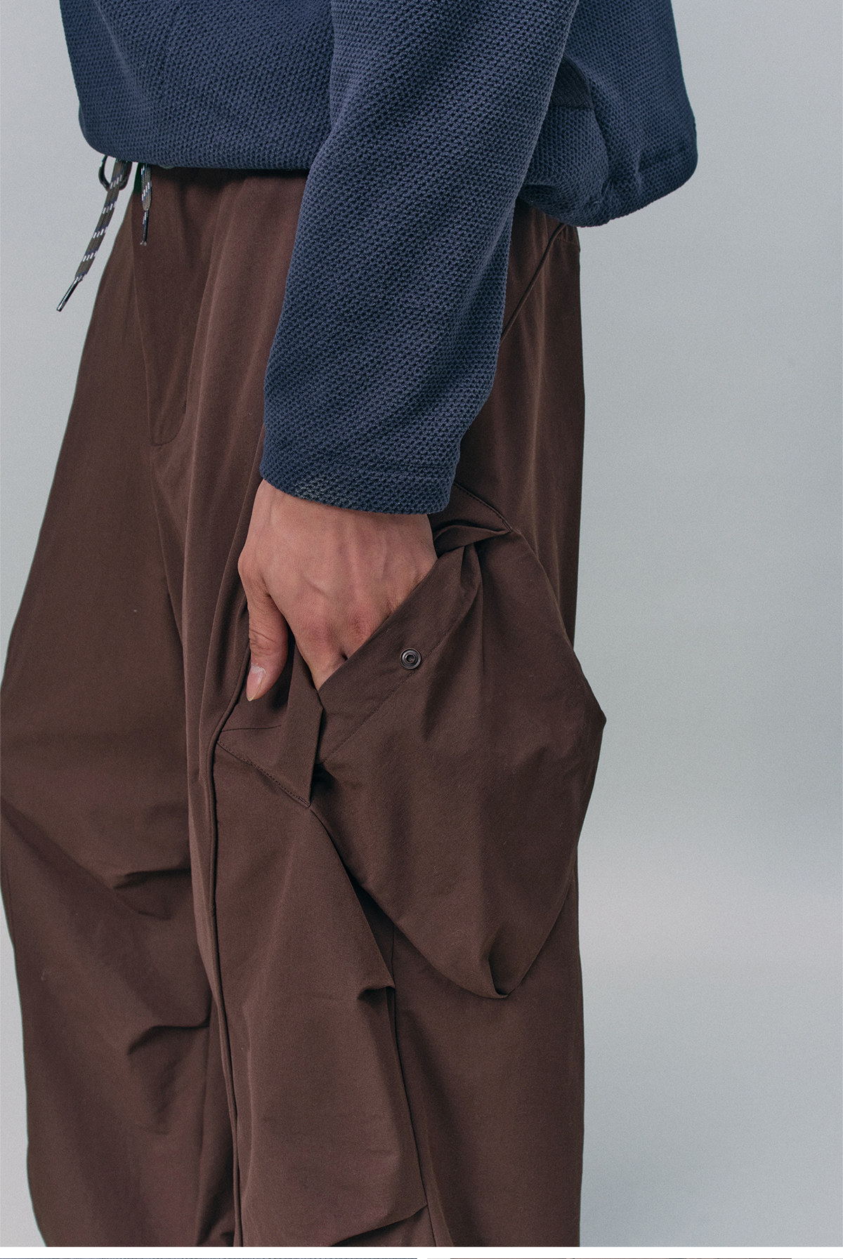 Полуобъёмные карманы в стиле workwear добавляют изделию выраженный трёхмерный эффект и ощущение высокого качества исполнения.