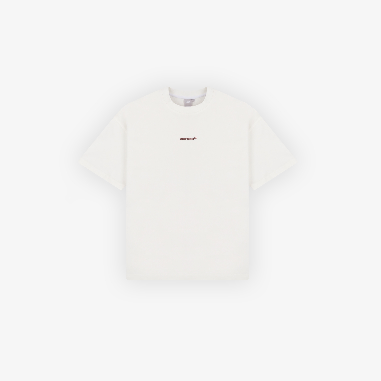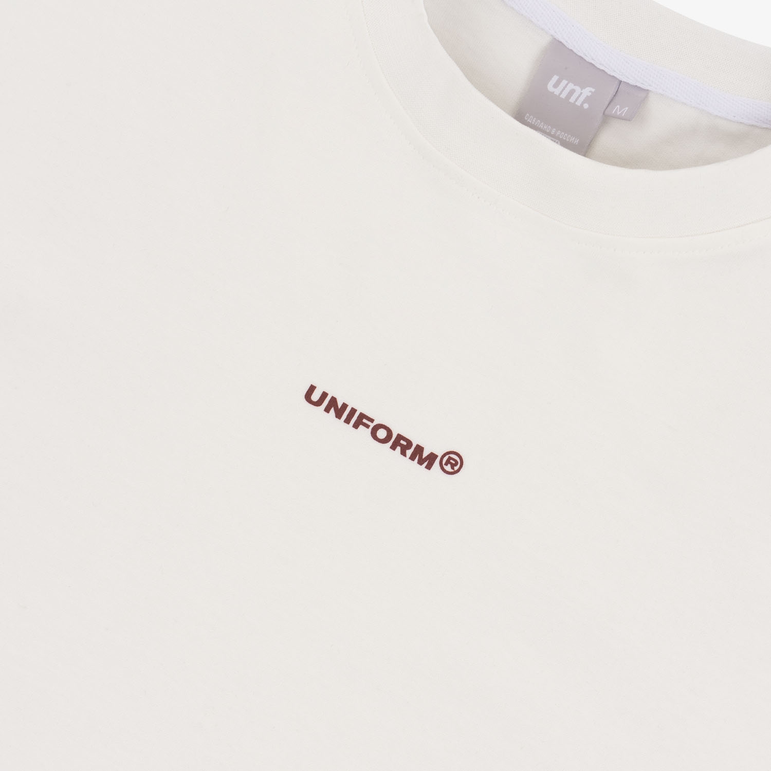 Футболка из плотной хлопковой ткани (кулирная гладь) с принтом бордового цвета на груди изделия. Материал: кулирная гладь 240 гр., 100% хлопок Цвет: молочный