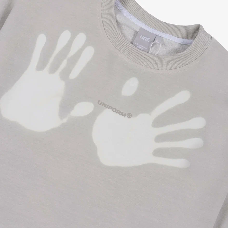 Термохромная ткань меняет цвет при температуре 31°, в холодном состоянии цвет изделия - серый, в теплом состоянии цвет изделия - белый. На теле цвет изделия остается динамичным, так как в местах прилегания к телу футболка меняет цвет.