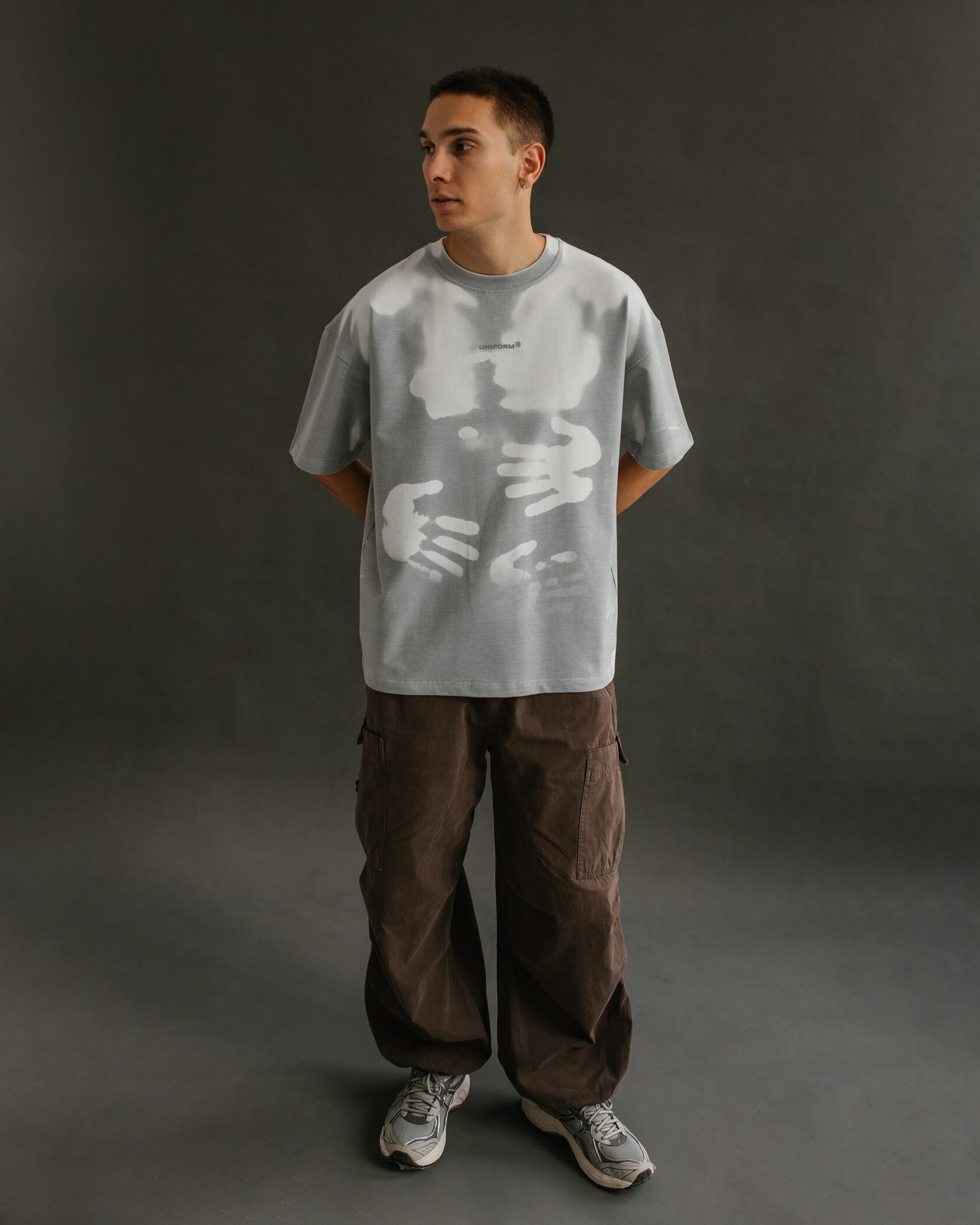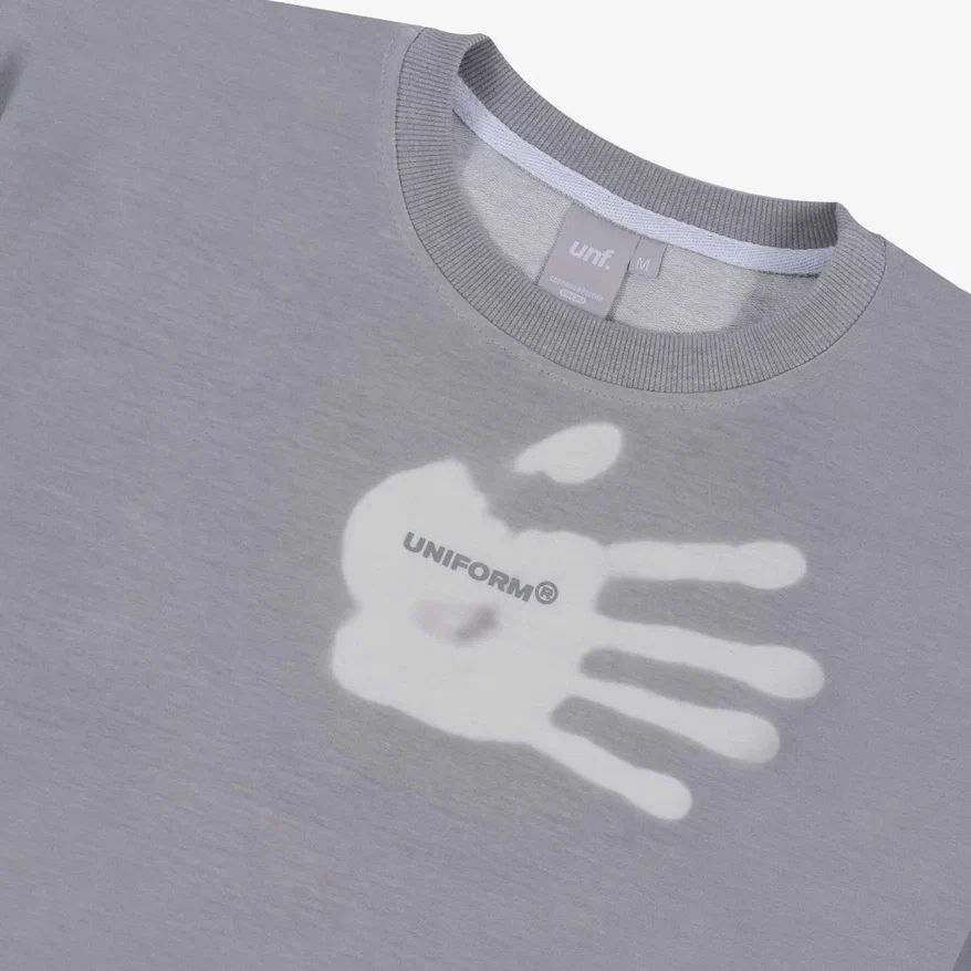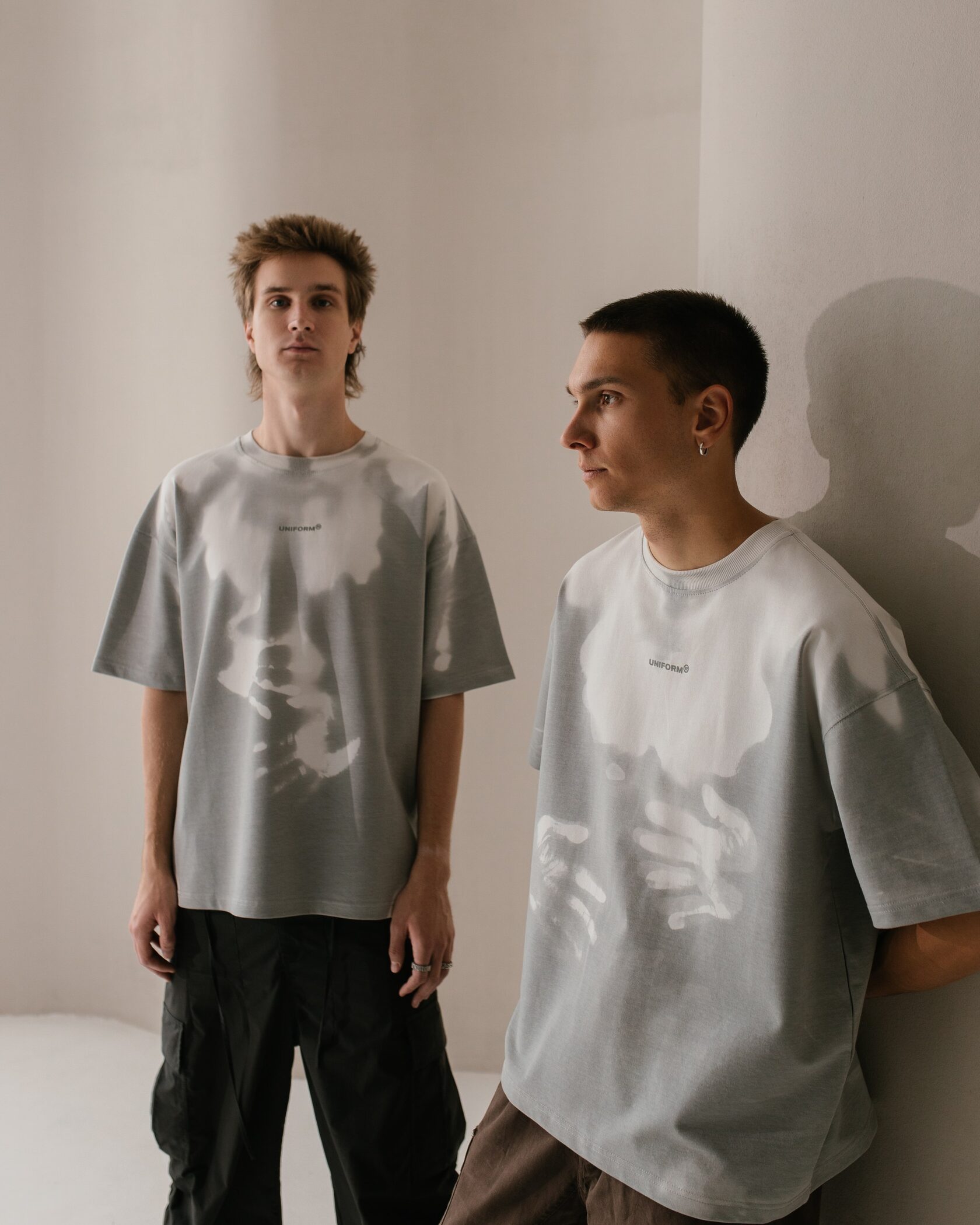 Футболка изготовлена из классической хлопковой ткани с небольшим добавление синтетических волокон для комфортной эксплуатации и исключения растягивания. Дизайн выполнен в качестве минималистичного логотипа в цвет изделия, который становится виден при изменении цвета свитшота.