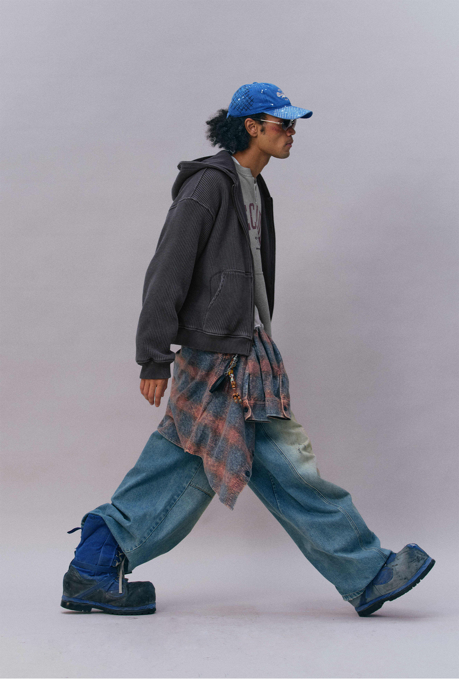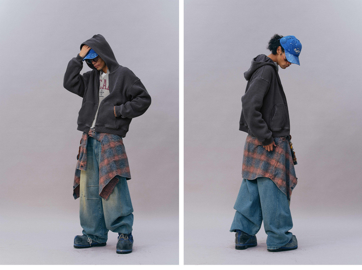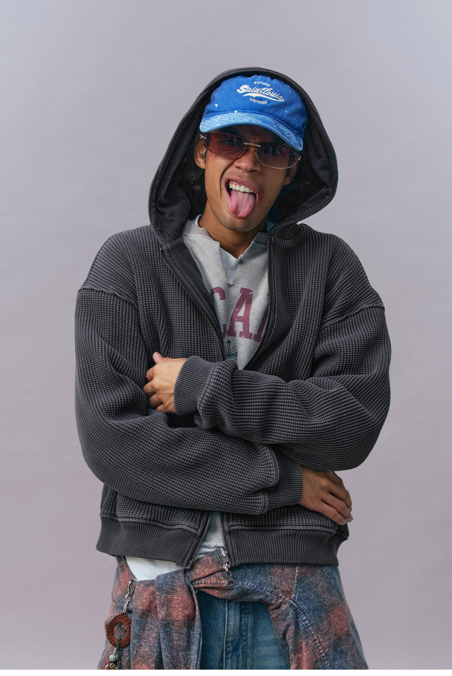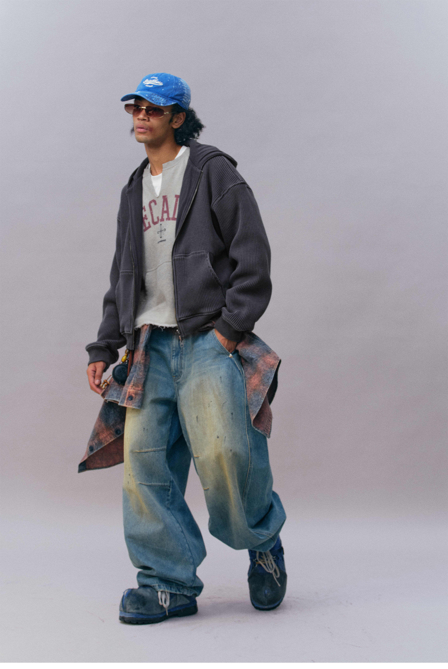 Изделие целиком подвергается обработке в технике «стирка с камнями» (каменная стирка). Эта технология, имитирующая эффект длительной естественной носки и стирок, придает цвету мягкие винтажные оттенки с тонкой неравномерностью (потертостью), а также смягчает ткань, делая ее с первой примерки нежной, пушистой и мягкой, создавая уникальную текстуру «обжитой» вещи и усиливая ощущение комфорта и винтажного шарма.