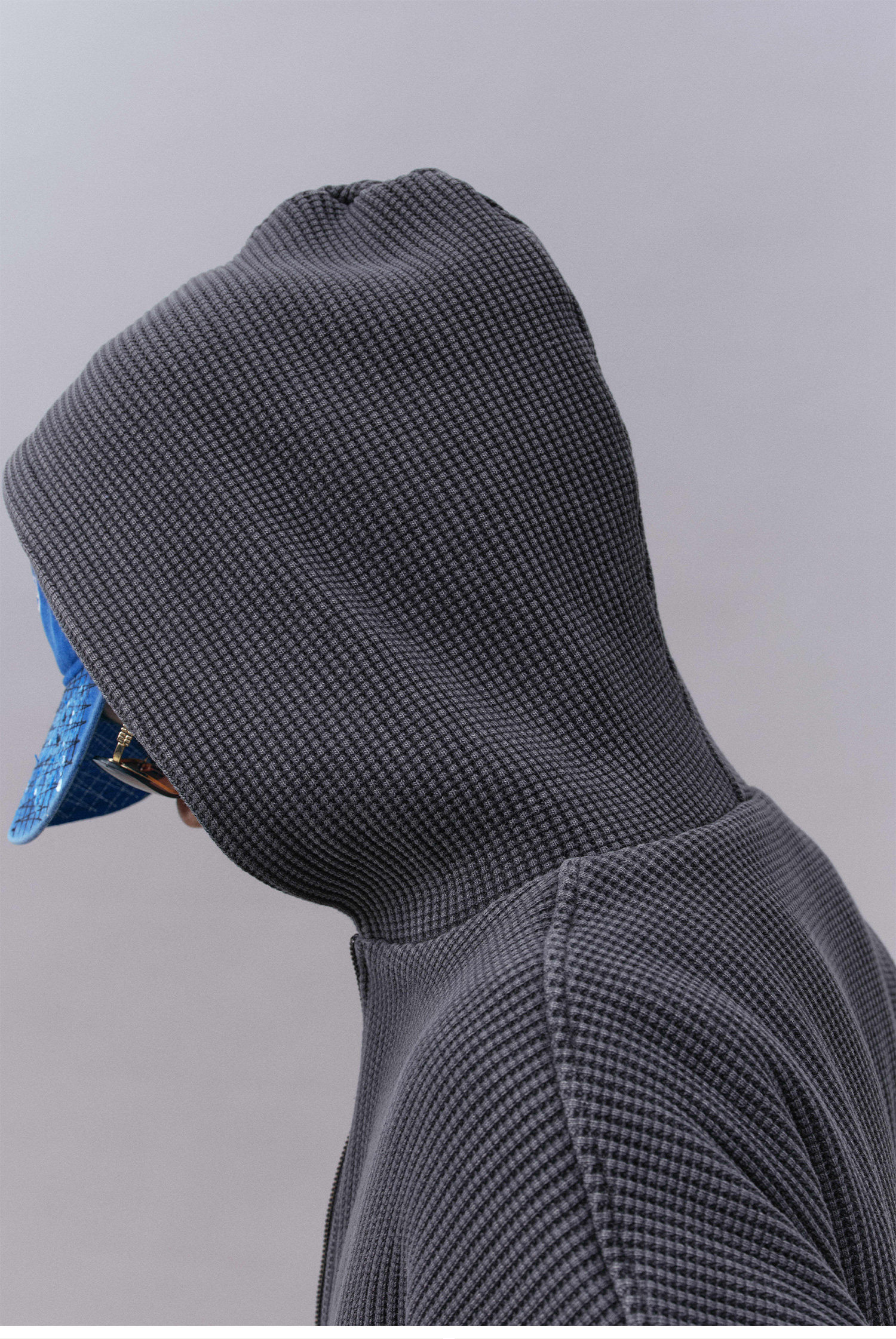 Плотная фактурная ткань с крупным рисунком «вафля», плотностью 600 г/м² (лицевая сторона)Fabric Material 2 / Состав ткани 2