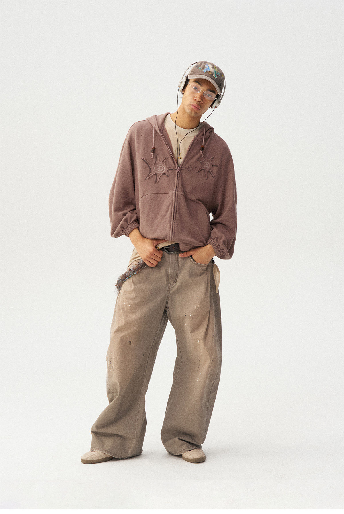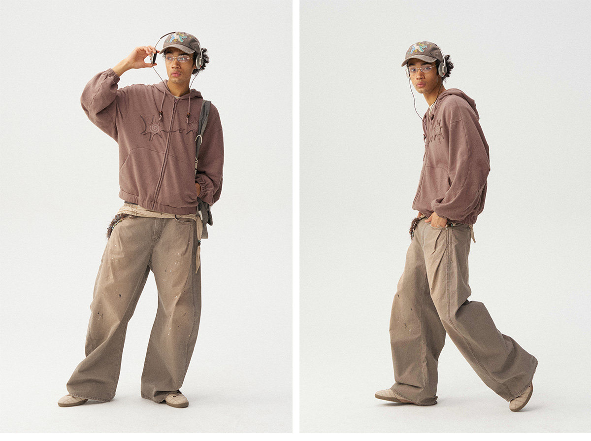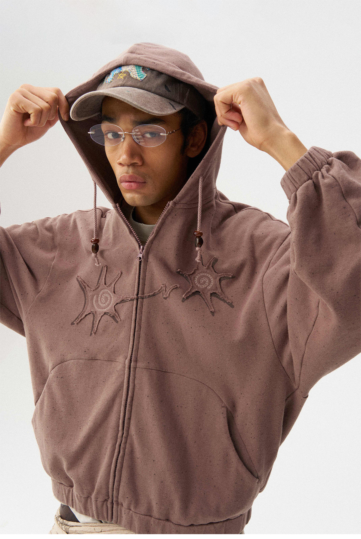 Сочетание множества техник: принта и вышивки. Концы шнурка на капюшоне украшены бусинами ручной работы. Свободный крой, рукав покроя «сабля» (изогнутый) обеспечивает комфорт и соответствует винтажному стилю.