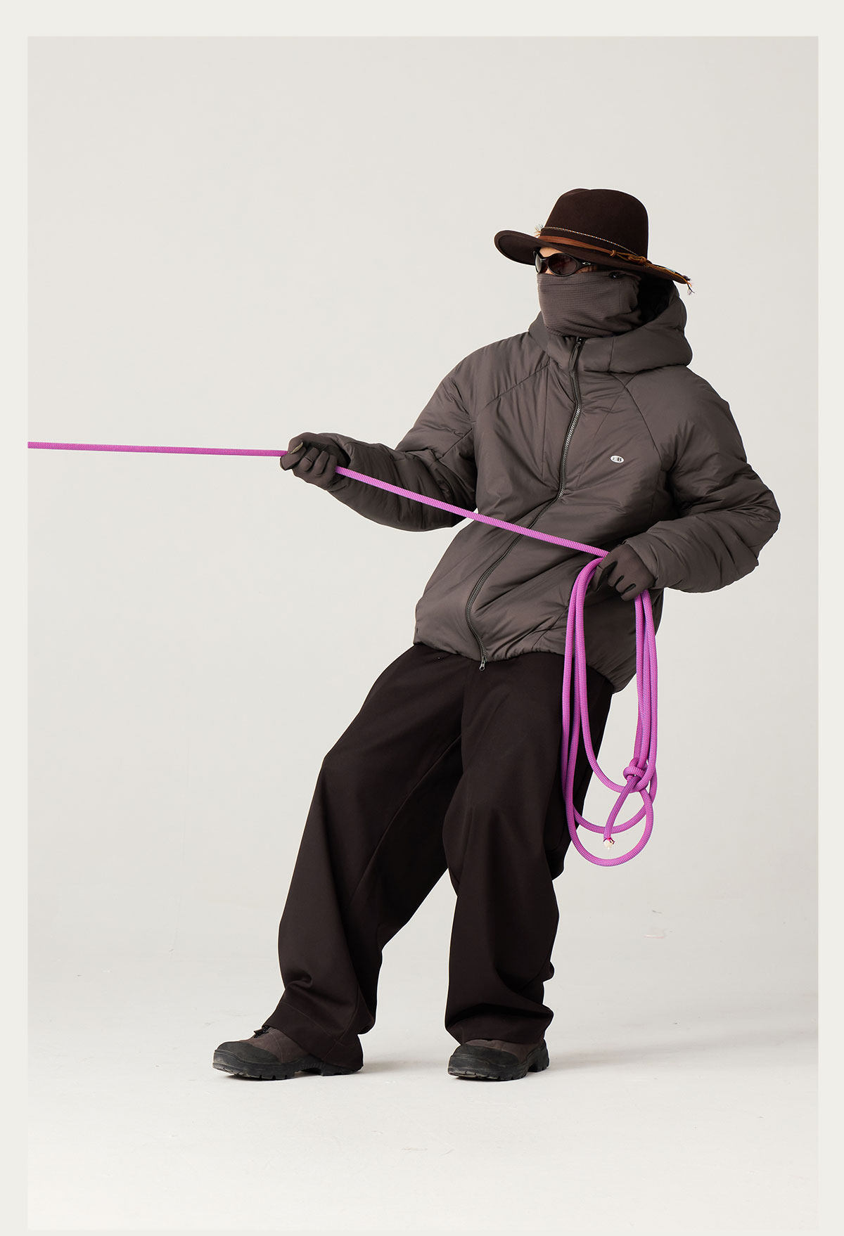 Увеличенный капюшон с круговой регулировкой по краю усиливает защиту головы от холода и предотвращает проникновение ветра, сочетая комфорт и выразительный силуэт.
