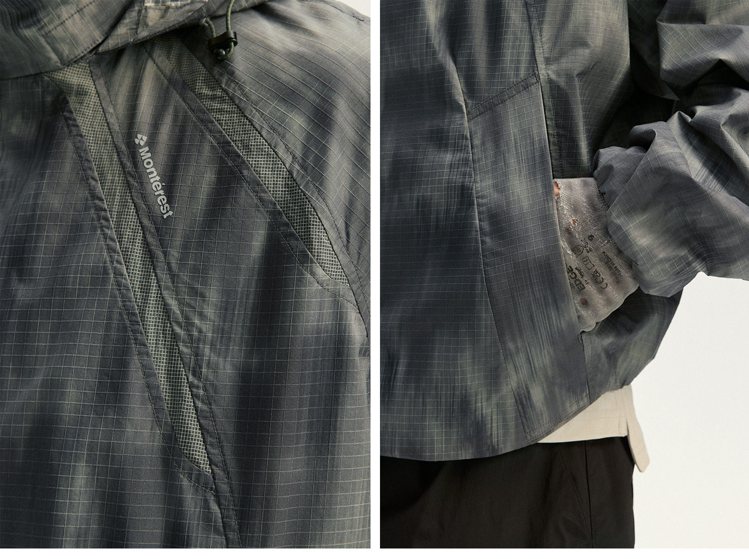 Использована заказная ткань с камуфляжным узором и малозаметной клеткой, в сочетании с дышащей мелкоячеистой сеткой и внутренней подкладкой из сетки — это повышает износостойкость и воздухопроницаемость. Применена технология C0 безфторного водоотталкивания.