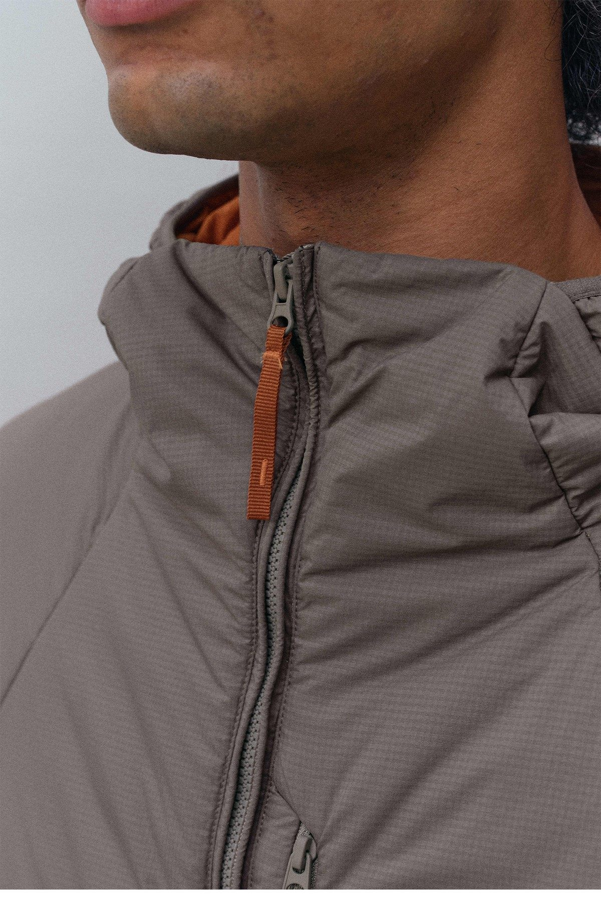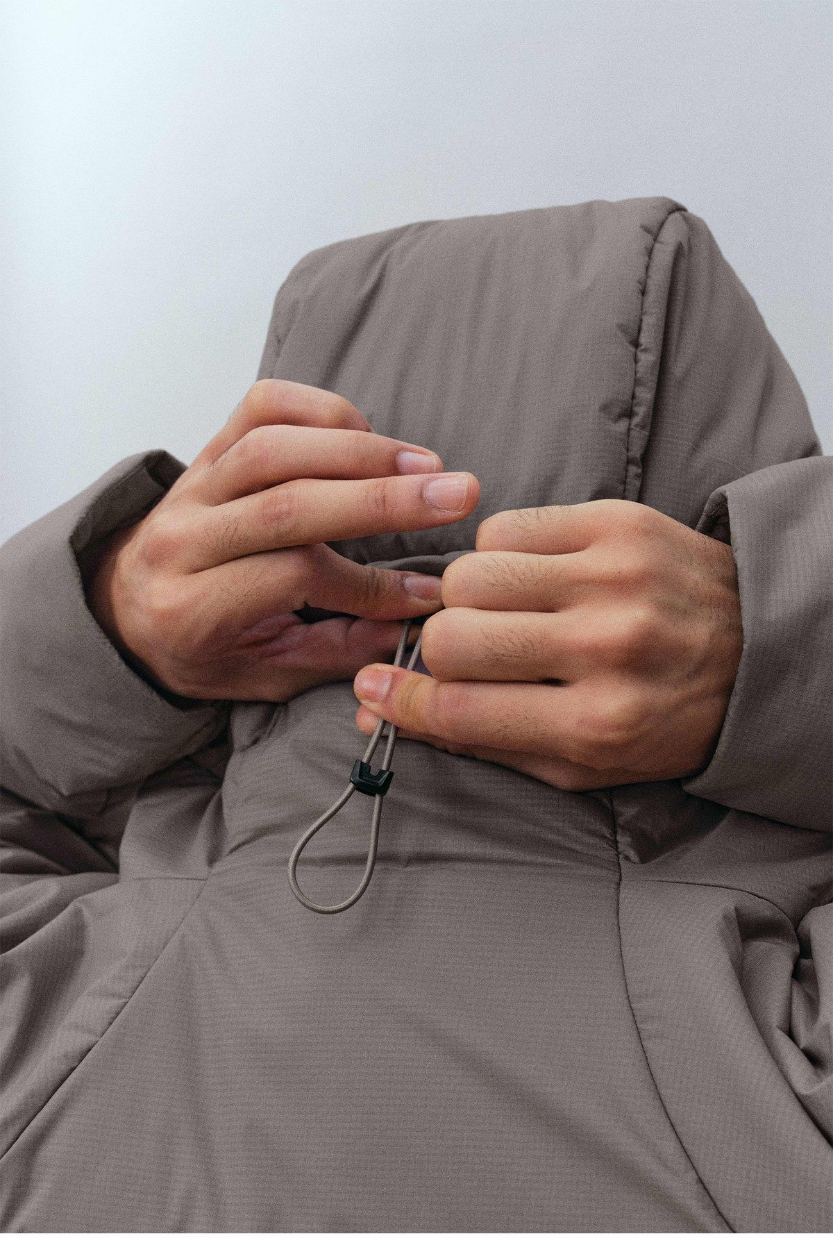 Интегрированная конструкция капюшона и высокого воротника образует структуру «двойной защиты», которая эффективно защищает шею от холодного ветра и одновременно обеспечивает сохранение тепла головы. Сзади на капюшоне предусмотрен регулировочный фиксатор, позволяющий настраивать плотность прилегания в соответствии с индивидуальными особенностями, что обеспечивает лучшую посадку по телу, ветрозащиту и сохранение тепла.