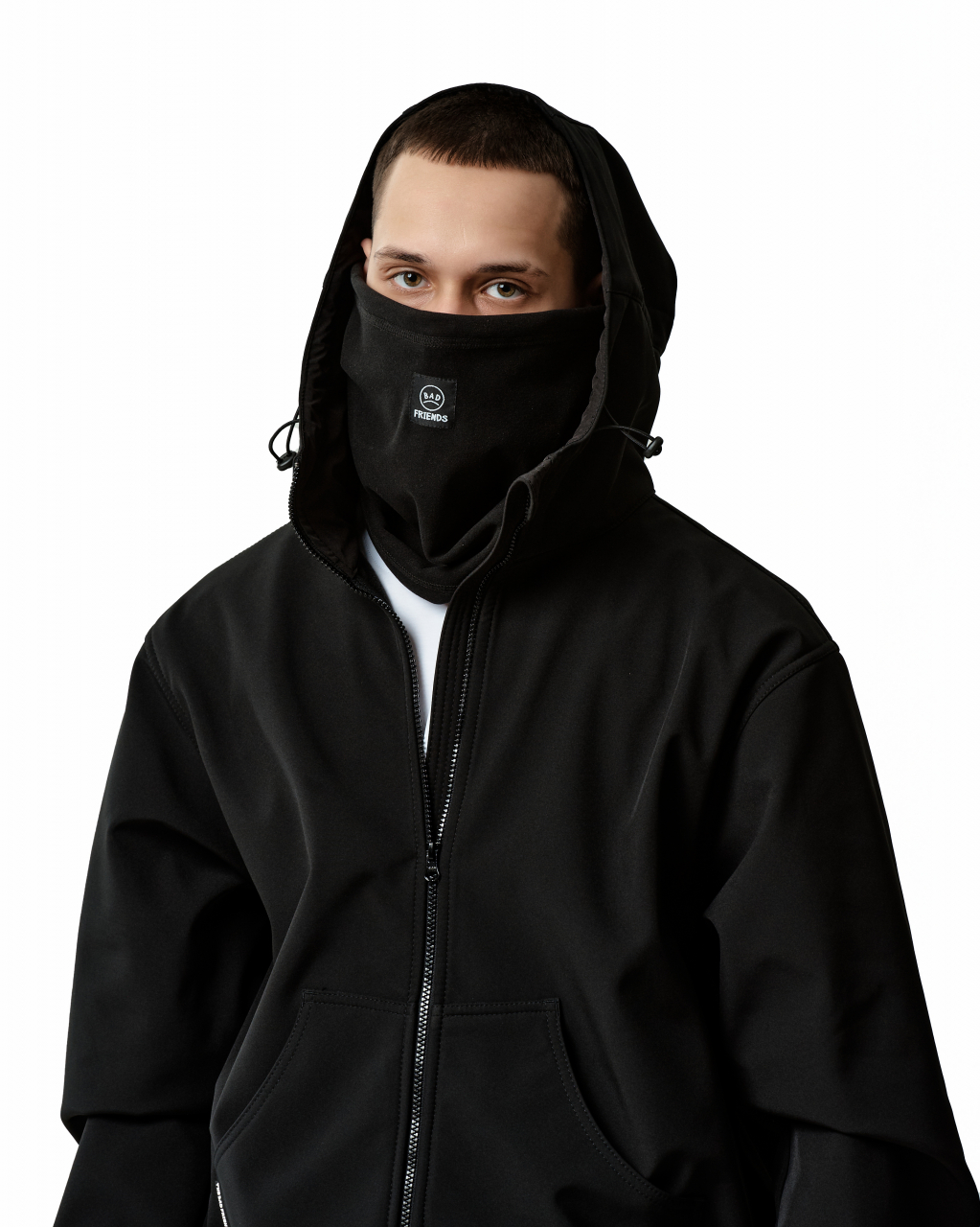 Укороченная куртка, выполненная из softshell (ткань с многослойной конструкцией, внешне напоминающие нейлон, а с изнанки − флис. Концепция производства софтшелла позволяет достичь оптимальных эксплуатационных характеристик: отведение влаги, вентиляция, сохранение тепла, защита от ветра и осадков).