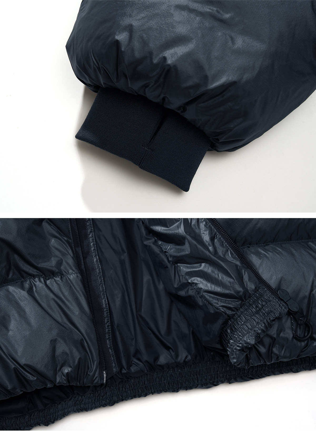 Модель сохраняет фирменный стиль бренда — свободный и комфортный крой. Используется лёгкий пуховый материал с глянцевой текстурой, а внутренняя сторона обработана анти-пуховым покрытием. В сочетании с подкладкой из ткани 380T это эффективно предотвращает выбивание пуха.