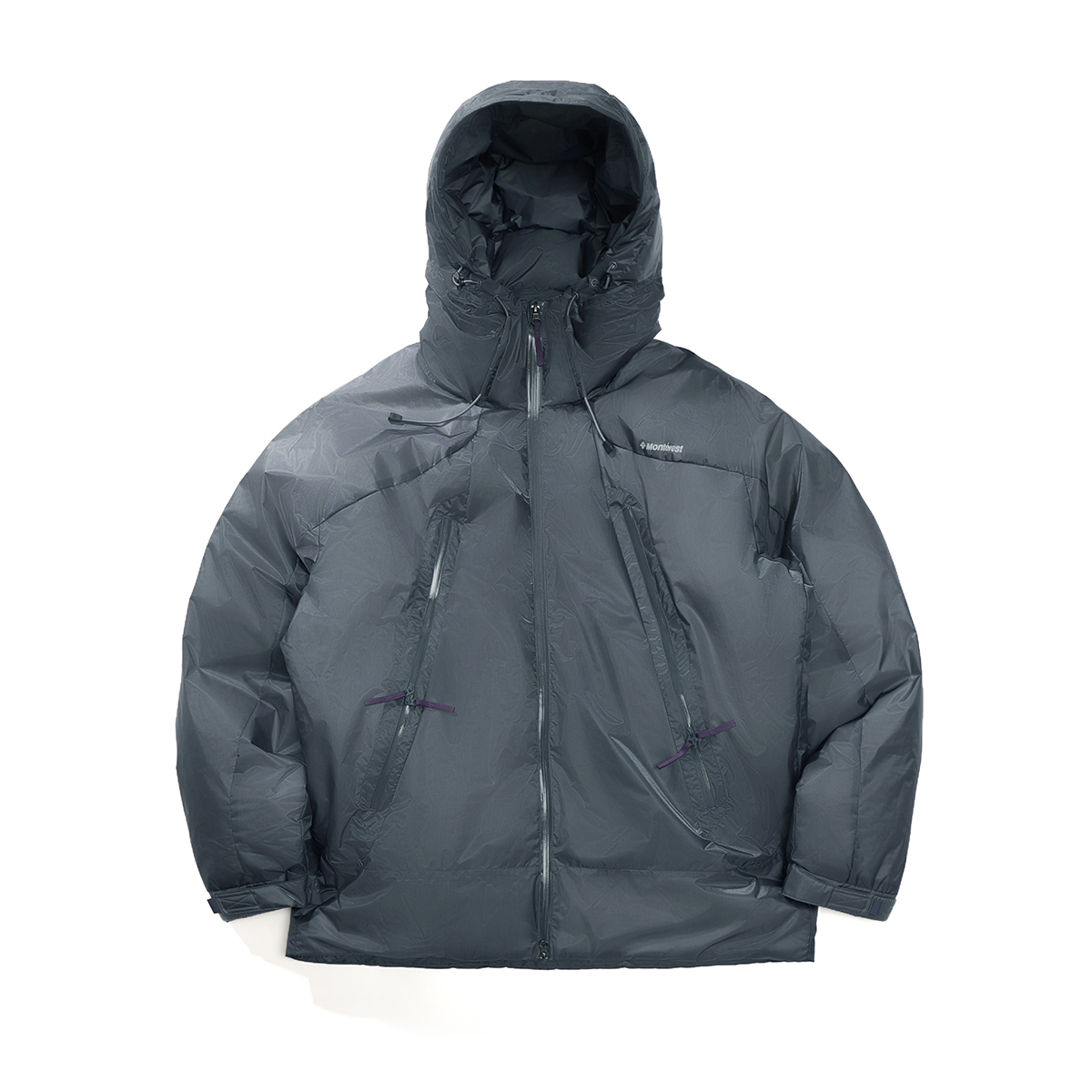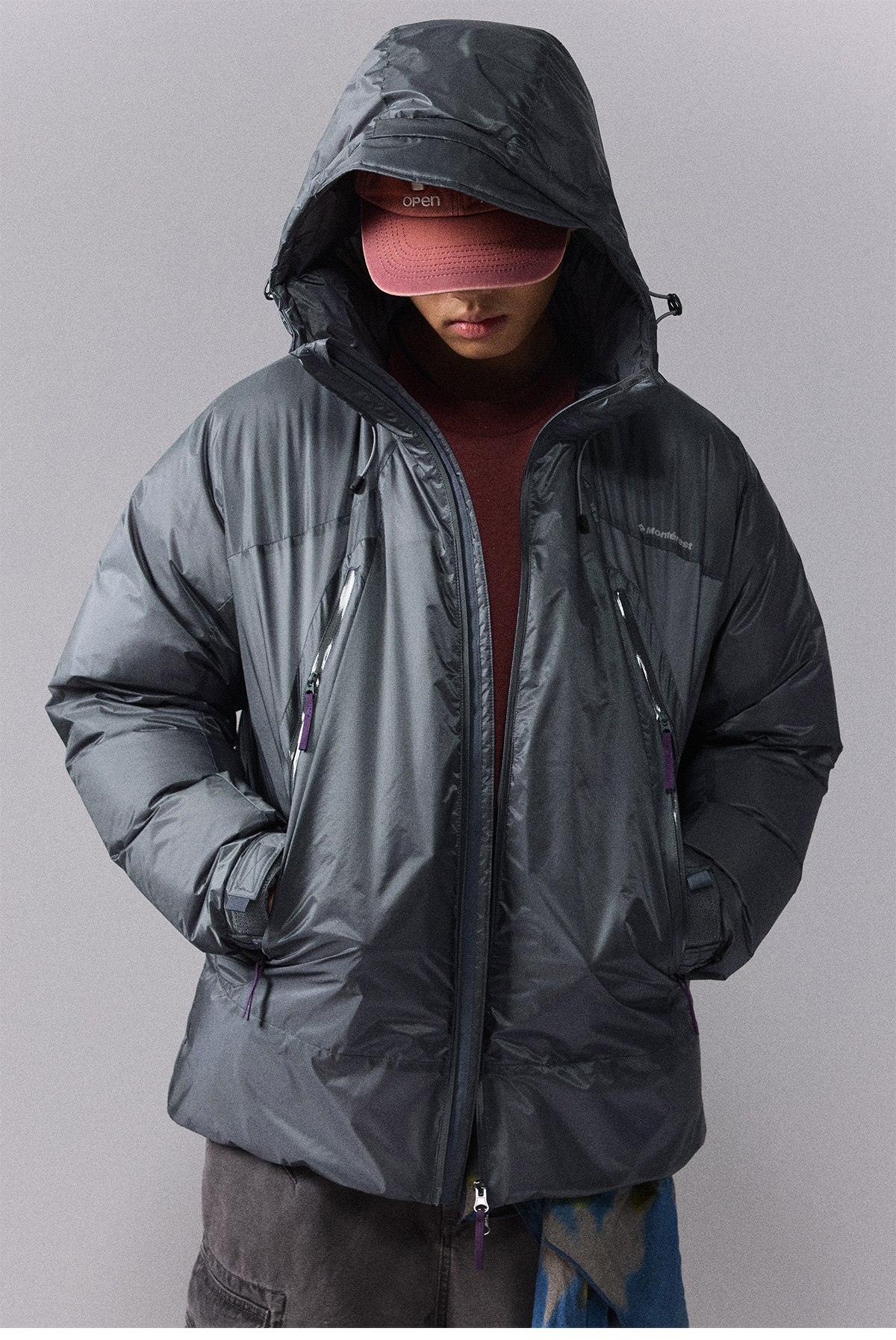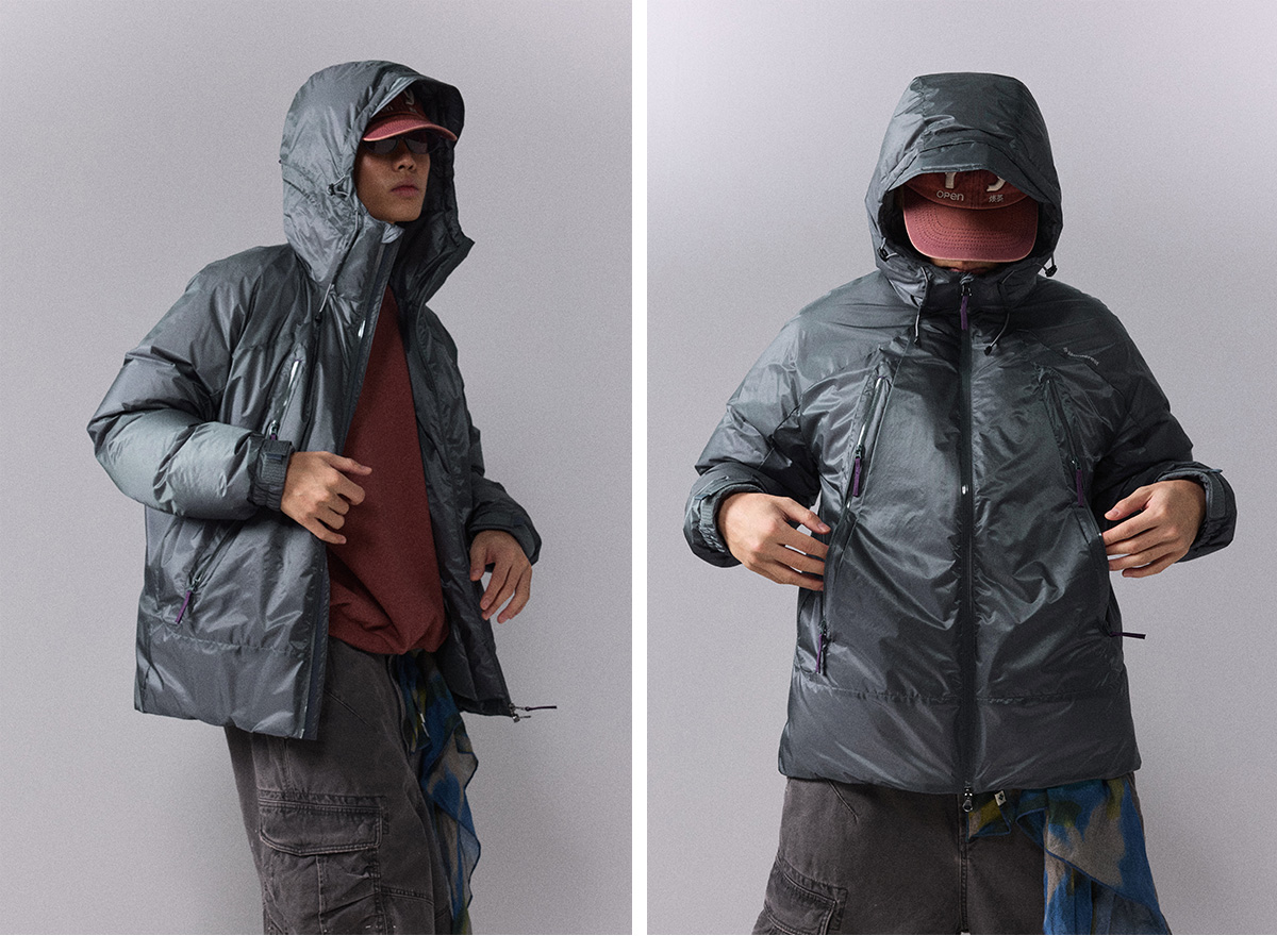 Ткань уровня outdoor shell для переменчивой погоды; двухслойная конструкция улучшает защиту от выхода пуха и комфорт при носке.