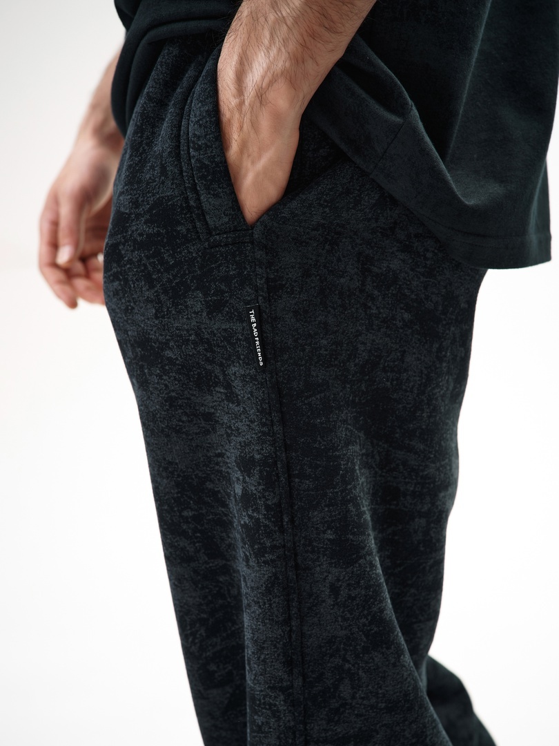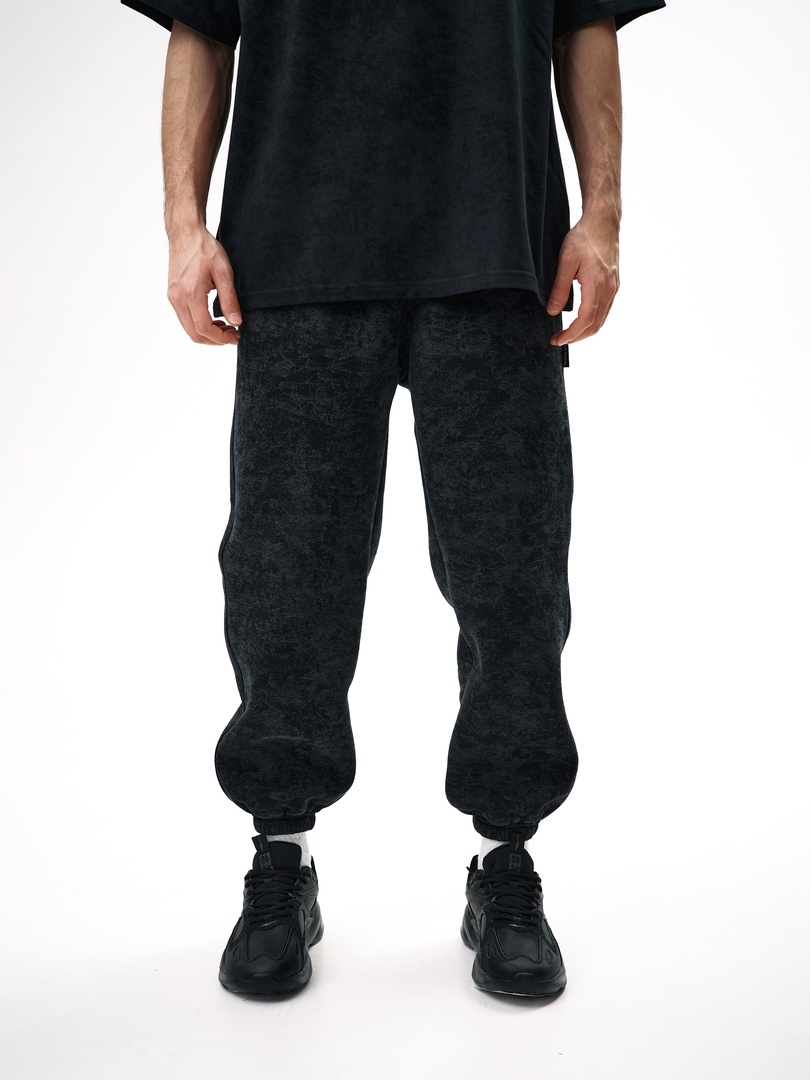 Свободные и теплые штаны винтажного цвета, внешне напоминающего окраску камня обсидиан. Выполнены из футера с начесом.