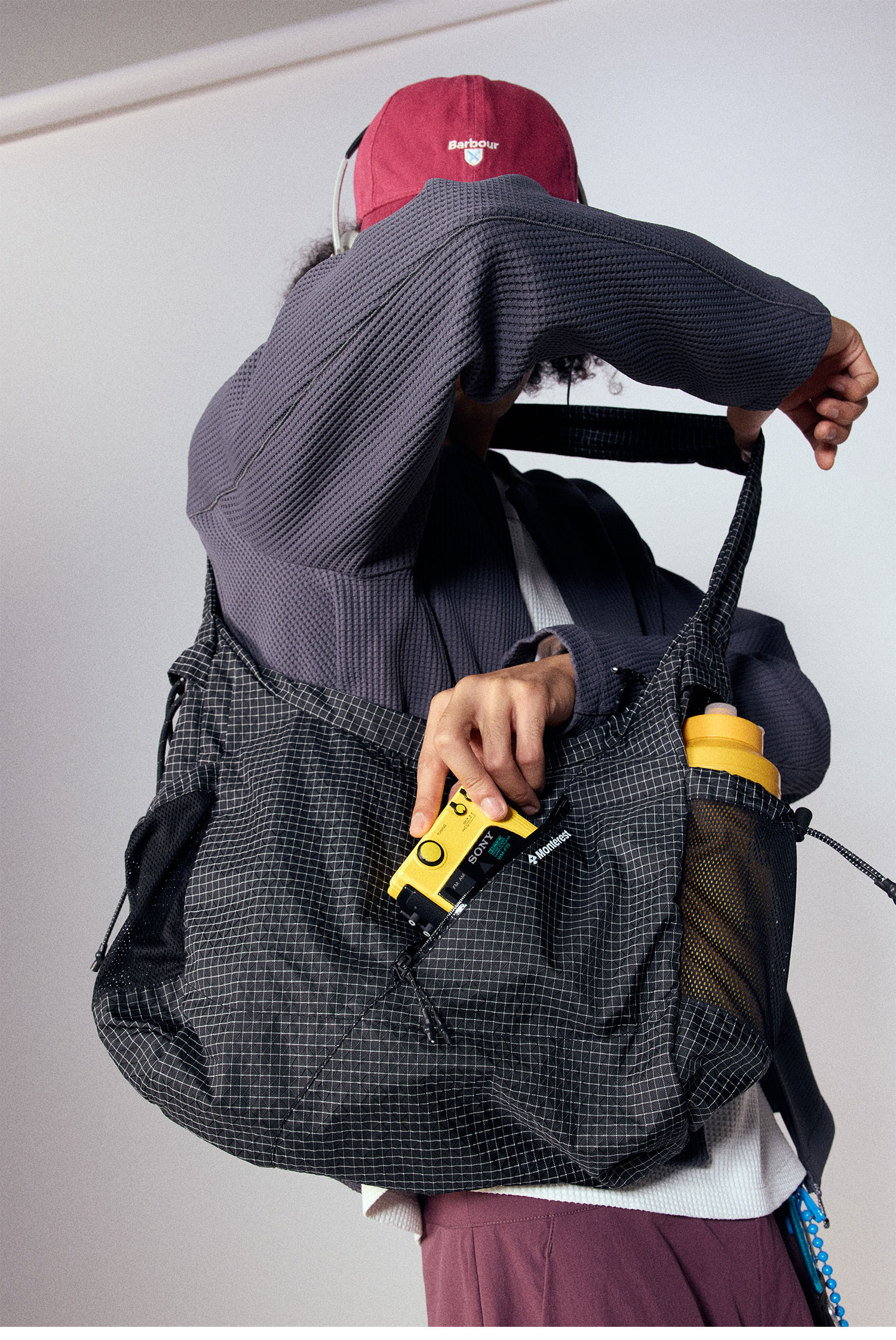 Данная сумка через плечо выполнена из ткани с выраженной outdoor-фактурой