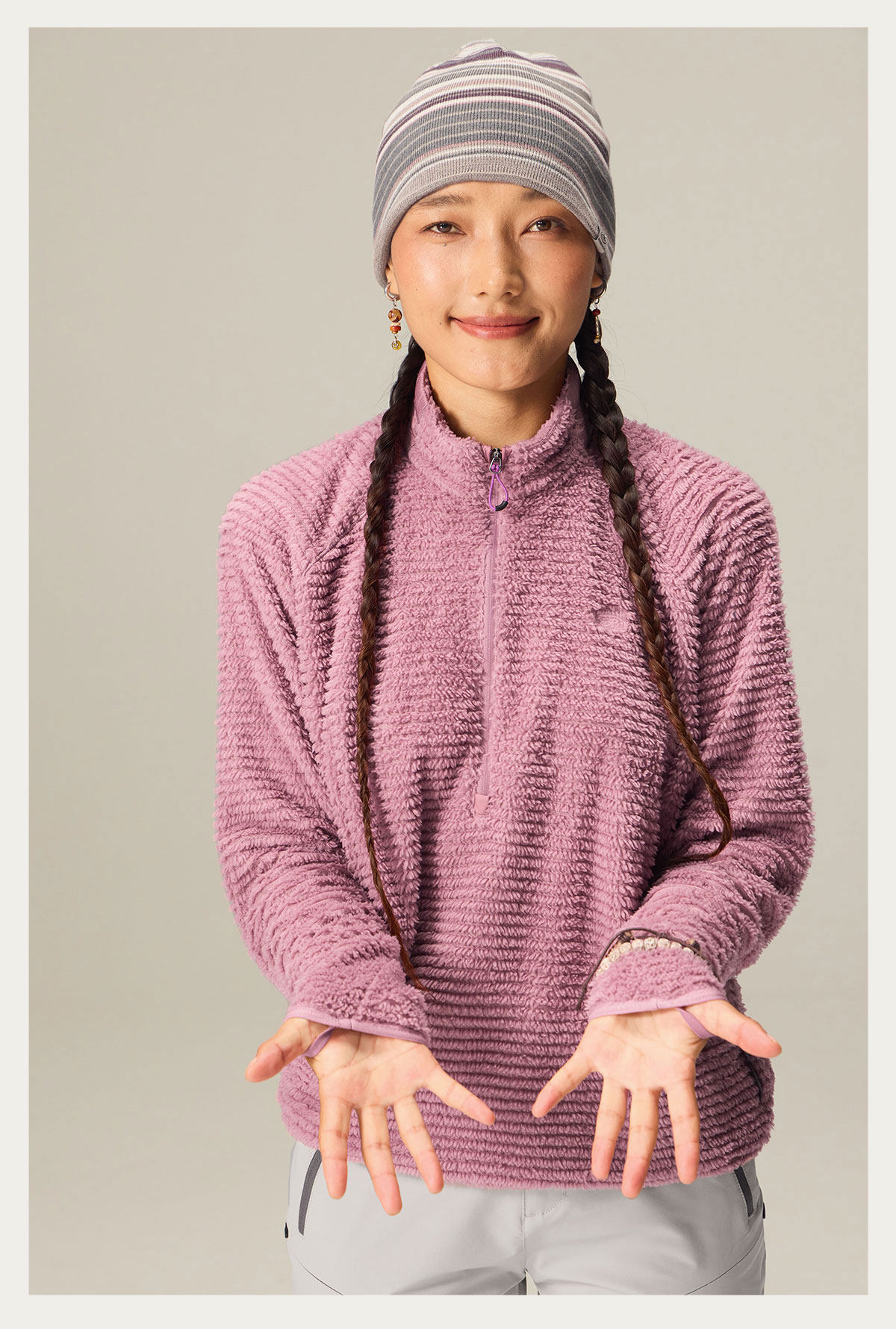 Особая ворсистая текстура ткани обеспечивает сохранение тепла в статичном состоянии.